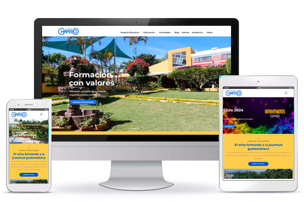 Web del Liceo Chapero. Informativa, Publicacion de recursos academicos, Galeria y Blog, es un sitio muy activo con bastante trafico tanto de la gente que necesita informarse sobre el colegio como de los estudiantes, profesores y padres de familia que acceden al sitio para ver las calificaciones de sus hijos y realizar los pagos de colegiatura en una seccion privada.